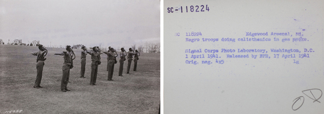 | Các quân nhân thực hành sử dụng dụng cụ phòng độc tại Kho vũ khí Edgewood ở Maryland hồi đầu thập niên 1940. Ảnh nguồn: Army Signal Corps via National Archives. |