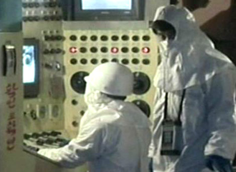 | Kỹ thuật viên Triều Tiên điều khiển hệ thống làm giàu Uranium ở Trung tâm hạt nhân Yongbyon. |