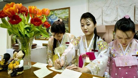 | Nhân viên phục vụ Triều Tiên trong một nhà hàng ở Hà Lan. |