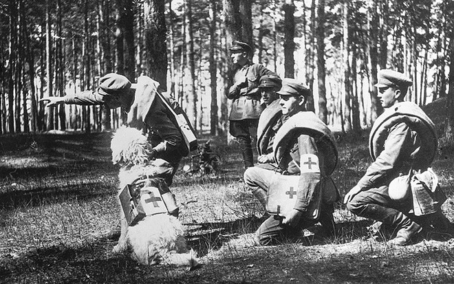 | Chó mang thuốc cứu thương cho binh sĩ. |