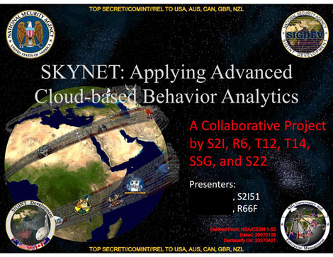 Còn phiên bản SKYNET của NSA có chức năng xác định những đối tượng được tin là những người đưa tin của Al-Qaeda.