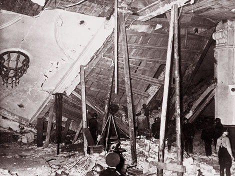 | Cảnh hiện trường tan hoang sau vụ nổ mìn tại quán bia Burgerbraukeller. |