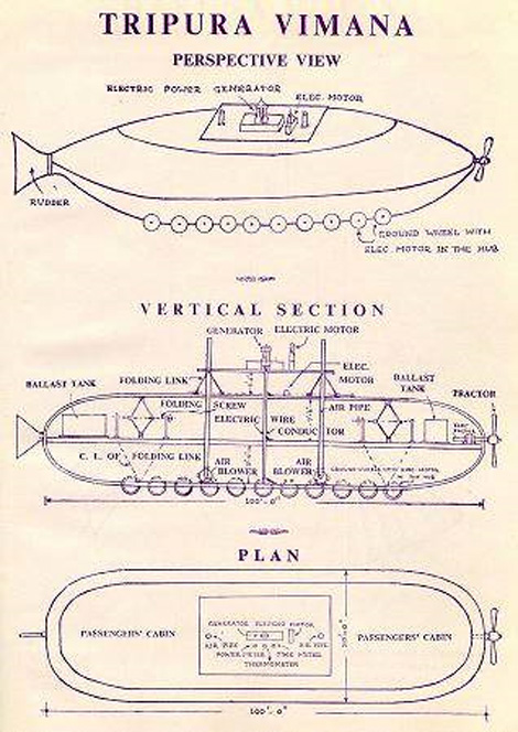 | Phác họa cấu trúc cỗ máy Vimana dựa theo tài liệu cổ. |