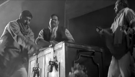 Bismil phá két đựng tiền cướp được trên chuyến xe lửa Kakori (ảnh do Cảnh sát Anh dựng lại hiện trường.
