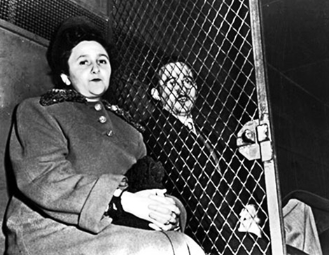 | Hai vợ chồng Rosenberg khi bị dẫn giải ra tòa. |