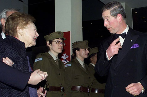 | Nancy Wake gặp Thái tử Charles của nước Anh năm 2002. |