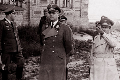 E. Koch và A. Rosenberg thị sát tòa lâu đài Ordensburg khi Phòng hổ phách mới được chuyển đến cất giấu. |