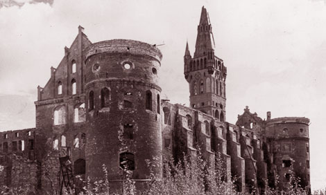| Cảnh pháo đài Ordensburg đổ nát trong Thế chiến II. |