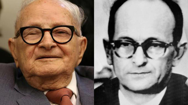 Người hùng của tình báo Israel Rafi Eitan (bên trái) và cựu lãnh đạo Đức Quốc xã Adolf Eichmann. Ảnh: Getty.