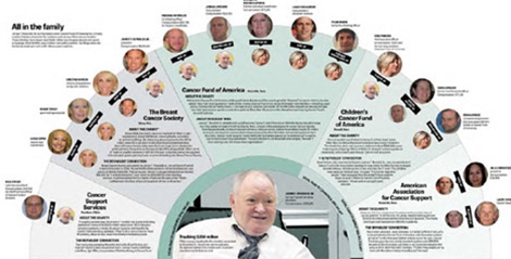 Không chỉ thành lập Quỹ Ung thư Mỹ và Dịch vụ hỗ trợ ung thư, James Reynolds còn sử dụng những người thân trong gia đình để cho ra đời “Hội Ung thư vú” (Breast Cancer Society - BCS) và “Quỹ Ung thư trẻ em Mỹ” (Children’s Cancer Fund of America - CCFA), trong đó Rose Perkins, vợ cũ của James Reynolds là giám đốc CCFA, lĩnh lương 227.000 USD/năm.
