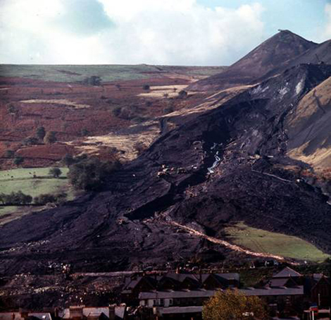 Ngôi làng Aberfan ở xứ Welsh nằm gọn trong một thung lũng, bao quanh bởi một dãy núi chứa quặng than. Năm 1966, ngôi làng có 5.000 người dân, hầu hết làm việc ở mỏ than. Phía trên sườn núi, gần đường dẫn vào làng, có một đống chất thải khổng lồ sau quá trình khai thác. Đích thân NCB đã phê duyệt vị trí của đống chất thải này, mặc dù nó quá gần với thị trấn.