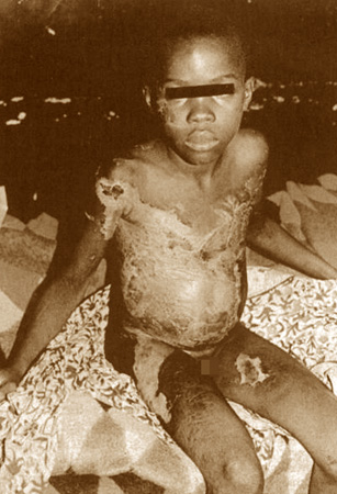 | Một đứa bé phồng rộp da bụng, đùi vì thảm họa (ảnh của bệnh viện thị trấn Wum). |