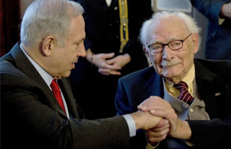 Thủ tướng Benjamin Netanyahu (trái) vinh danh Johan van Hulst năm 2015. |