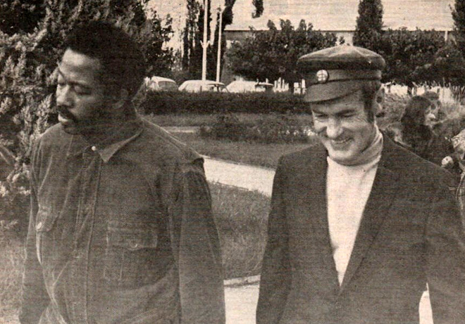 | Leary cùng cựu lãnh đạo đảng Những con Báo đen (BPP) Eldridge Cleaver. |