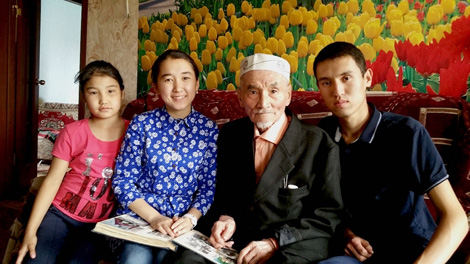 | Cụ ông Eliugazy Nurgaliev và các cháu. |