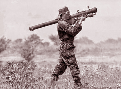 | Một người lính Sandinista với khẩu tên lửa vác vai 9K32 Strela-2. |
