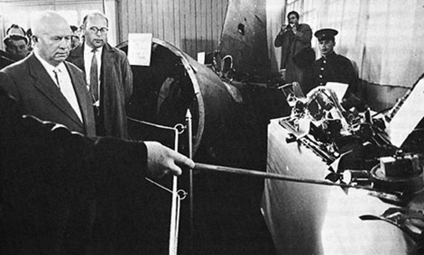 Tổng Bí thư Nikita Khrushchev (đầu tiên bên trái) thị sát tang vật trưng bày tại Moscow.