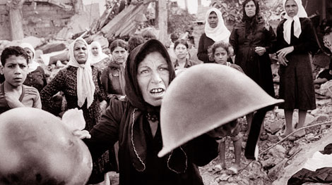 | Người Palestine tại các khu trại tị nạn Sabra và Shatila trong cuộc chiến Liban năm 1982. |
