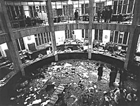 | Hiện trường vụ đánh bom tiệm pizza Fontana ở Milan do Lữ đoàn Đỏ chủ mưu, giết chết 20 người. |