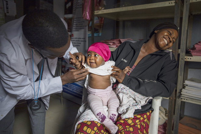 | Bé Beatrice, 1 tuổi khám tổng quát tại Yola (Nigeria), nơi hàng ngàn trẻ em chết mỗi năm do bệnh viêm phổi. Ảnh nguồn: Modola/Unicef. |