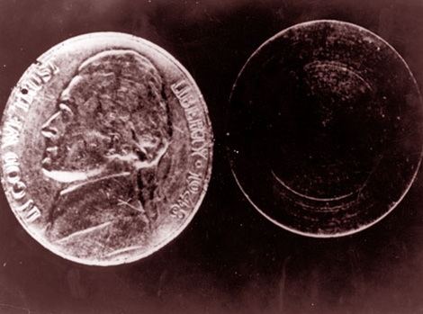 | Mật mã vi phim bên trong đồng xu kẽm. |