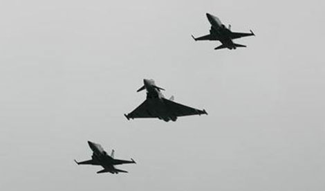 | Máy bay chiến đấu F-15 của Arập Xêút xuất kích ném bom ở Yemen. |