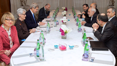 Các phái đoàn Mỹ và Iran tại vòng 2 cuộc đàm phán hạt nhân ở thành phố Montreux, Thụy Sĩ, ngày 23/2/2015.