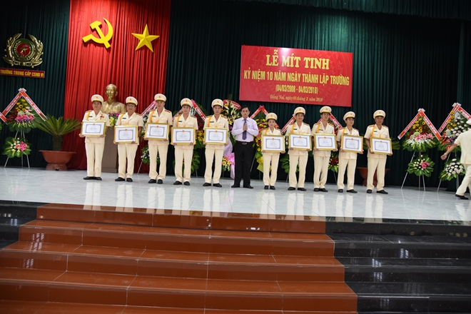 Dịp này, Trường Trung cấp CSND VI cũng vinh dự nhận được 1 Bằng khen của Thủ tướng Chính phủ; 5 Cờ thi đua xuất sắc và 3 Bằng khen của Bộ công an; 7 Bằng khen của UBND tỉnh Đồng Nai trao tặng. Ngoài ra còn có 5 tập thể, 10 cá nhân nhận được Bằng khen từ Bộ trưởng Bộ Công an; 7 tập thể và 16 cá nhân nhận được Bằng khen của Tổng Cục trưởng Tổng Cục Chính trị CAND về thành tích đóng góp trong sự nghiệp giáo dục-đào tạo ngành CAND.