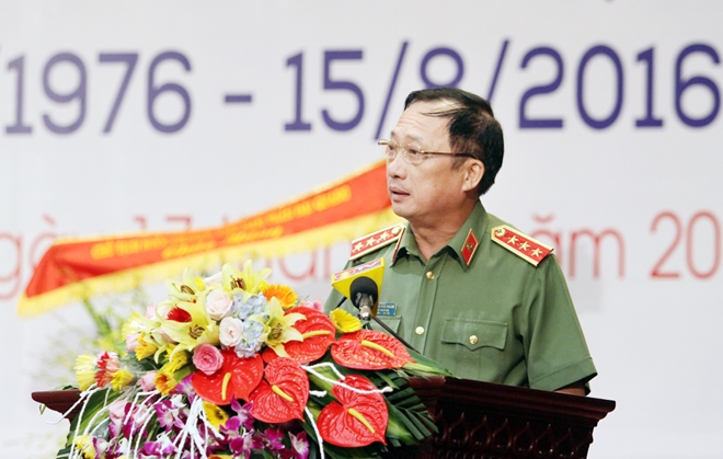 Thượng tướng Nguyễn Văn Thành, Ủy viên Trung ương Đảng, Thứ trưởng Bộ Công an, phát biểu tại buổi lễ |
