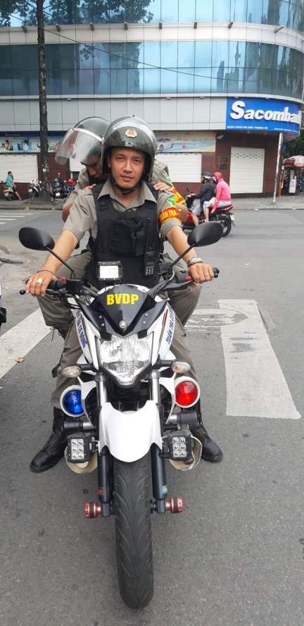 | Các BVDP này nhìn rất chuyên nghiệp, từ trang phục, công cụ đến phương tiện “tác chiến”. |