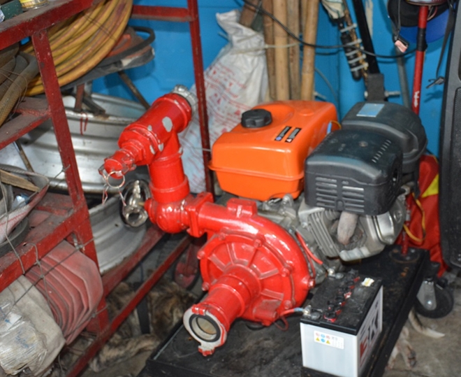 Ngoài chiếc xe tuần tra - chữa cháy, xe chữa cháy mini, ông Thành còn mới mua một máy chữa cháy lớn có thể kết nối trực tiếp vào các họng nước chữa cháy với giá 3.800 USD…