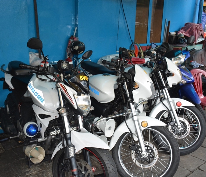 | Các BVDP này nhìn rất chuyên nghiệp, từ trang phục, công cụ đến phương tiện “tác chiến”. |