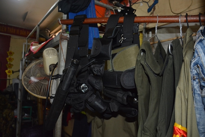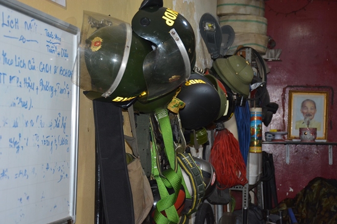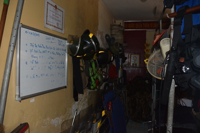 Trụ sở Ban BVDP khá chật chội bởi ngoài là nơi nghỉ ngơi của BVDP còn phải để những trang thiết bị như khiên, áo giáp, dùi cui… |