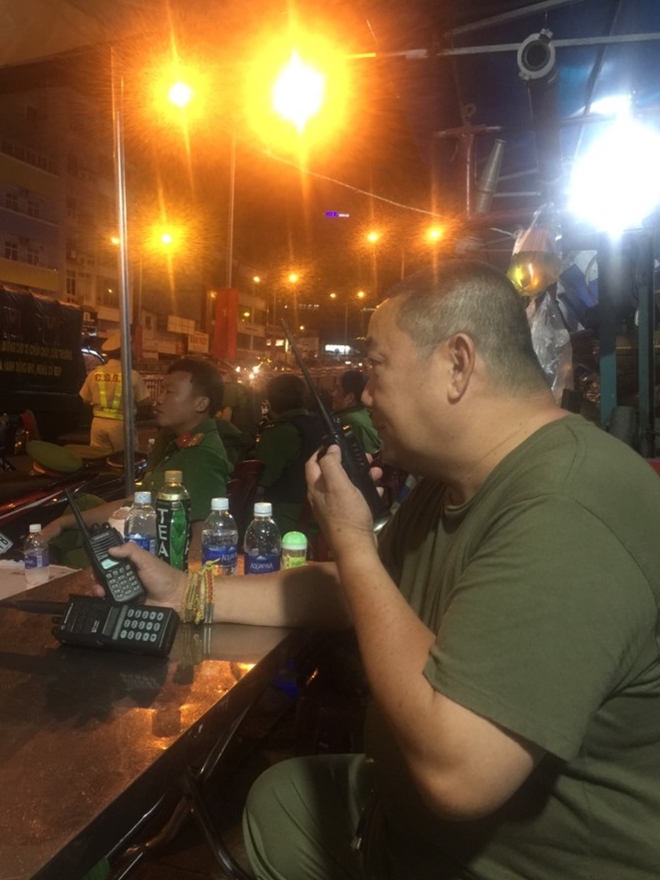 | Ông Lý Nhơn Thành trong một lần chỉ huy các BVDP qua bộ đàm. |