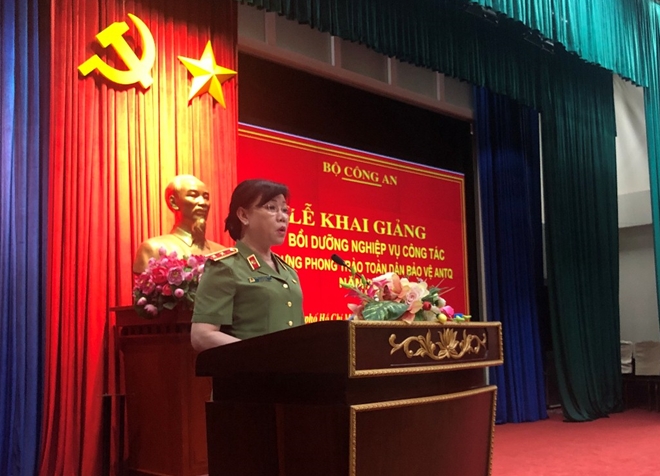 Ngày 14-11, tại TP Hồ Chí Minh, Bộ Công an đã tổ chức Lễ khai giảng Lớp “Bồi dưỡng nghiệp vụ công tác xây dựng phong trào bảo vệ ANTQ, năm 2018”. Trung tướng Trần Thị Ngọc Đẹp, Cục trưởng Cục Xây dựng phong trào toàn dân bảo vệ ANTQ, Bộ Công an cùng lãnh đạo các cục nghiệp vụ của Bộ đã tham dự buổi lễ.