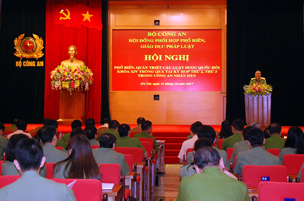Sáng 31-10, tại Hà Nội, Bộ Công an đã tổ chức Hội nghị phổ biến, quán triệt những nội dung cơ bản của các đạo luật được Quốc hội khóa XIV thông qua tại các kỳ họp lần thứ 2, 3 có liên quan đến công tác bảo đảm an ninh, trật tự và công tác Công an.
