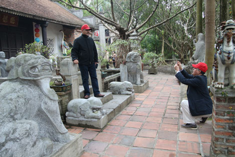 | Khách quốc tế thích thú với không gian văn hoá tại Việt phủ Thành Chương. |