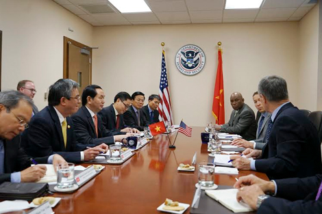 | Bộ trưởng Trần Đại Quang hội đàm với Bộ trưởng An ninh nội địa Hoa Kỳ. |