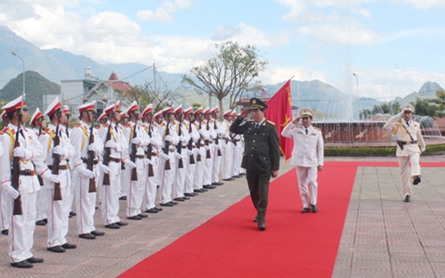 | Bộ trưởng Trần Đại Quang duyệt đội danh dự Công an tỉnh Lai Châu. |