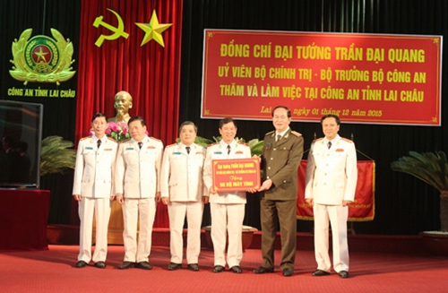 Thay mặt Đảng uỷ Công an Trung ương và Bộ Công an, Bộ trưởng Trần Đại Quang ghi nhận những chiến công, thành tích xuất sắc của cán bộ, chiến sỹ Công an tỉnh Lai Châu đạt được thời gian qua.