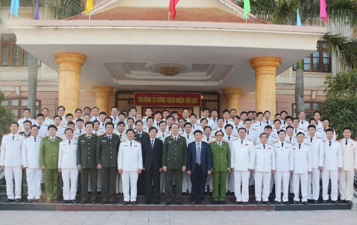 | Bộ trưởng Trần Đại Quang với cán bộ chiến sĩ Công an tỉnh Lai Châu. |