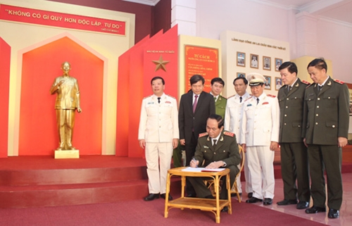 | Bộ trưởng Trần Đại Quang thăm và viết Sổ vàng Nhà truyền thống Công an tỉnh Lai Châu. |