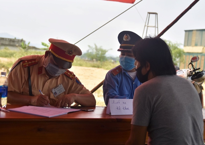 Dù thời tiết nóng bức, mặt đường nhựa bốc lên hơi nóng đến rát mặt nhưng Trung tá Mai Văn Hải cùng 2 CBCS thuộc Đội số 1 Phòng CSGT Công an tỉnh Thừa Thiên-Huế vẫn cố gắng bám đường và ra tín hiệu dừng xe để kiểm tra khi có xe ô tô chở khách chuẩn bị đến chốt. “Dịch COVID-19 đang diễn biến phức tạp nhưng vì yêu cầu nhiệm vụ công tác phòng chống dịch nên tôi và đồng đội quyết tâm hoàn thành tốt công việc được giao tại chốt kiểm soát y tế này. Quá trình làm nhiệm vụ, nếu phát hiện các trường hợp nghi nhiễm sẽ báo cáo BCĐPCD COVID-19 tỉnh để có biện pháp cách ly kịp thời”, Trung tá Hải cho biết.