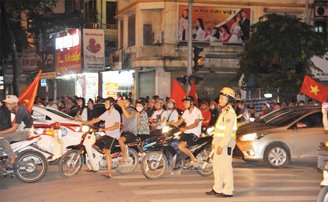 | Cục CSGT cũng khuyến cáo người tham gia giao thông, nhất là những người tham gia cổ vũ cho đội tuyển U23 Việt Nam cần nâng cao ý thức chấp hành tham gia giao thông. |
