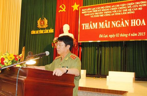 Phát biểu tại buổi giao lưu, Đại tá Trần Đình Thư, Phó giám đốc Công an tỉnh Lâm Đồng xúc động: Hôm nay, được giữ buổi giao lưu ôn lại truyền thống vẻ vang của lực lượng Công an chi viện cho chiến trường miền Nam trong thời kỳ chống Mỹ, cứu nước, được gặp các đồng chí, những người đã từng vào sinh ra tử, dũng cảm, kiên cường, mưu trí, sáng tạo, trung thành tuyệt đối với Đảng, với sự nghiệp Cách mạng, những người luôn biết dựa vào nhân dân, chiến đấu vì nhân dân... càng nhắc nhở CBCS Công an Lâm Đồng, đặc biệt là thế hệ trẻ hôm nay phải phát huy truyền thống tốt đẹp của các thế hệ đi trước, kế tục xứng đáng với sự nghiệp cách mạng của các bậc cha anh, tuyệt đối trung thành với Đảng, với Tổ quốc, với nhân dân; khắc phục khó khăn, ra sức học tập, đoàn kết, quyết tâm thực hiện thắng lợi mọi nhiệm vụ, đảm bảo giữ vững ANQG, giữ gìn TTATXH, phục vụ đắc lực công cuộc xây dựng và phát triển kinh tế giàu mạnh trên mảnh đất giàu truyền thống cách mạng.