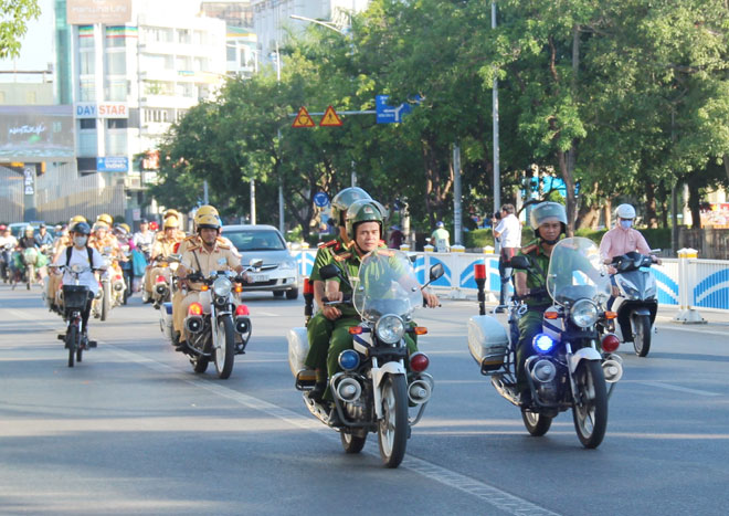 | Cảnh sát giao thông, Công an TP Cần Thơ tuần tra kiểm soát đảm bảo ANTT dịp lễ 2-9. |