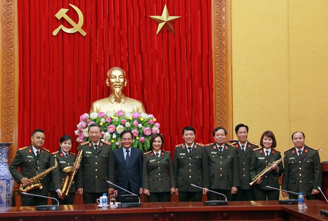 | Bộ trưởng Tô Lâm với CLB doanh nhân Phố Hiến và các nghệ sĩ Nhà hát CAND |