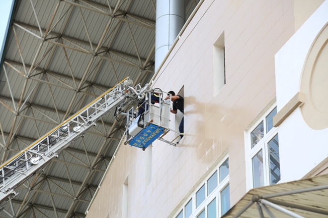 - Dùng xe thang dập lửa tòa nhà 6 tầng