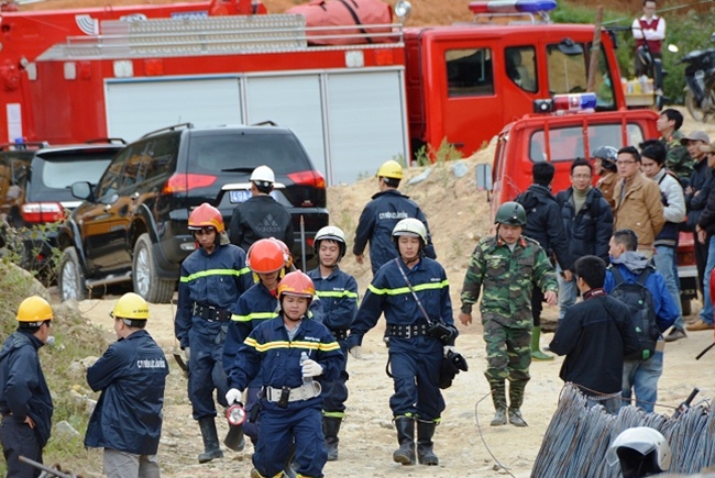 | Cảnh sát PCCC&CNCH Lâm Đồng trong một lần giải cứu gia đình bị nước lũ bao vây tại Đà Lạt |