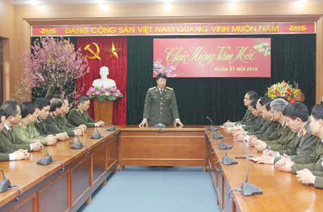 Tại Cục Xây dựng phong trào toàn dân bảo vệ ANTQ, Thiếu tướng Nguyễn Văn Khảo, Cục trưởng đã báo cáo tóm tắt tình hình kết quả công tác của đơn vị năm 2014, tình hình nghỉ Tết Nguyên đán Ất Mùi và nêu lên một số mục tiêu công tác trọng tâm. Năm 2014 cán bộ, đảng viên Đảng bộ, đơn vị đã hoàn thành xuất sắc nhiệm vụ, tiếp tục duy trì và đưa phong trào toàn dân bảo vệ ANTQ ngày càng đi vào chiều sâu, có sức lan toả rộng trong các tầng lớp nhân dân, phục vụ thiết thực công tác bảo vệ an ninh, trật tự ở cơ sở.